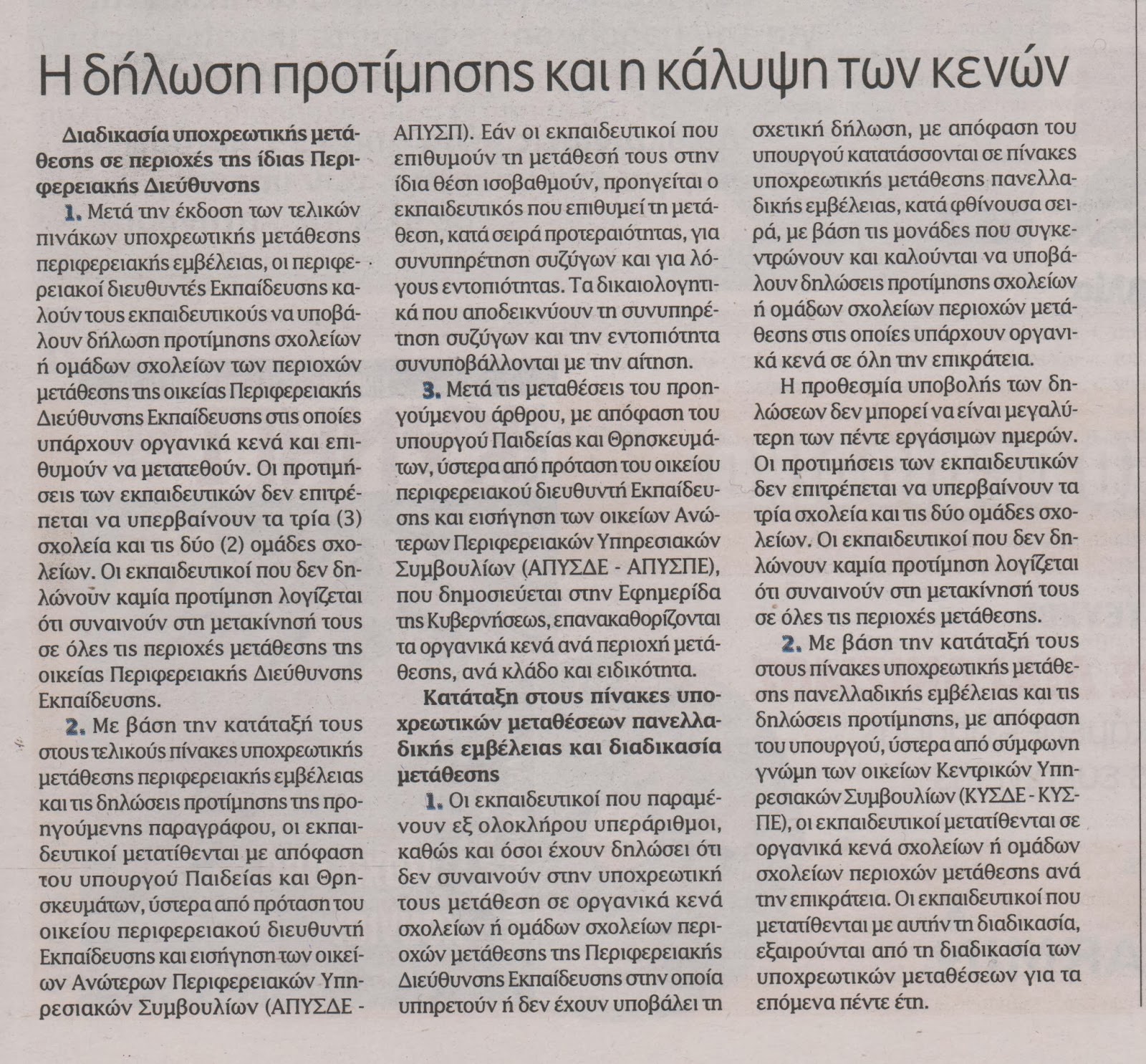 πρώτη φορά- τις υποχρεωτικές μεταθέσεις των υπεράριθμων εκπαιδευτικών της