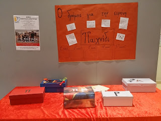 Προβλήθηκαν βίντεο με τα έργα των παιδιών και κινουμένων σχεδίων με θέμα την ειρήνη και τον πόλεμο. Μαθητές από τα γυμνάσια και τα λύκεια της περιοχής μας, διάβασαν κείμενα και απήγγειλαν ποίηματα που έγραψαν συμμαθητές και συμμαθήτριές τους, τα οποία εμπνεύστηκαν από την επίσκεψή τους με συνομήλικά τους προσφυγόπουλα αλλά και το συγκλονιστικό ποίημα της Κενυάτισσας Ουαρσάν Σάιρ «Κανένας δεν αφήνει την πατρίδα του, εκτός κι αν η πατρίδα του είναι το στόμα καρχαρία».