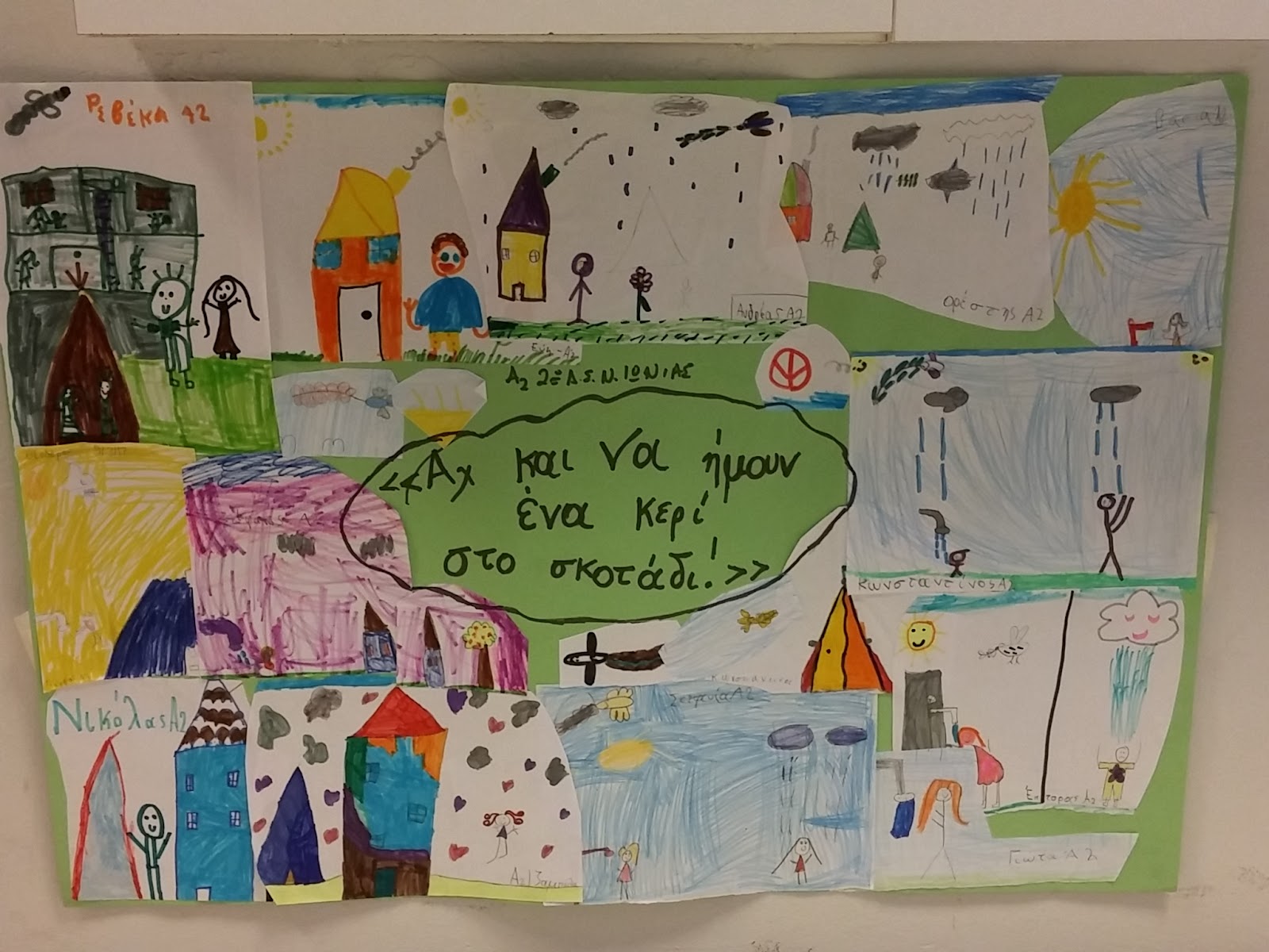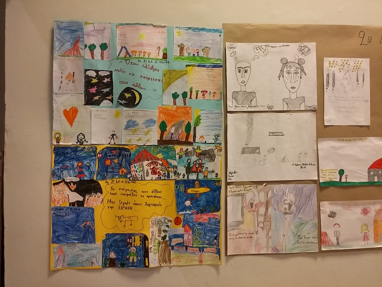 Προβλήθηκαν βίντεο με τα έργα των παιδιών και κινουμένων σχεδίων με θέμα την ειρήνη και τον πόλεμο. Μαθητές από τα γυμνάσια και τα λύκεια της περιοχής μας, διάβασαν κείμενα και απήγγειλαν ποίηματα που έγραψαν συμμαθητές και συμμαθήτριές τους, τα οποία εμπνεύστηκαν από την επίσκεψή τους με συνομήλικά τους προσφυγόπουλα αλλά και το συγκλονιστικό ποίημα της Κενυάτισσας Ουαρσάν Σάιρ «Κανένας δεν αφήνει την πατρίδα του, εκτός κι αν η πατρίδα του είναι το στόμα καρχαρία».