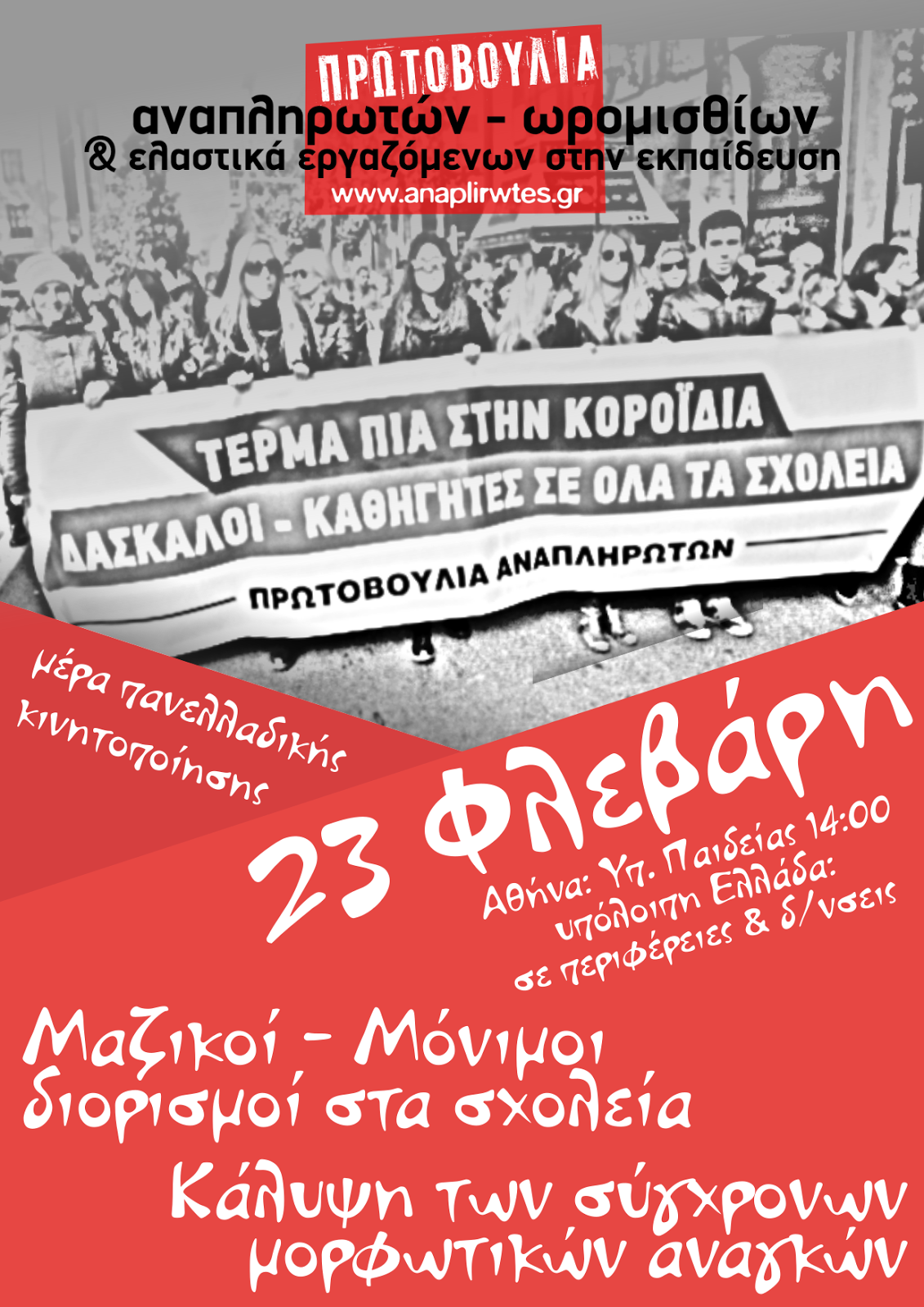 ΟΛΟΙ ΚΑΙ ΟΛΕΣ ΣΤΟ ΥΠΟΥΡΓΕΙΟ ΠΑΙΔΕΙΑΣ ΠΕΜΠΤΗ 23 ΤΟΥ ΦΛΕΒΑΡΗ ΩΡΑ 2.00 Μ.Μ.